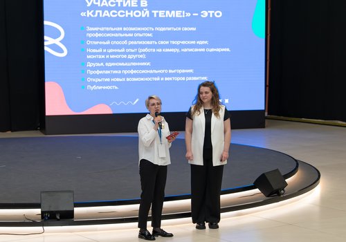Исполнительный директор ФКР Александра Поблинкова, куратор телевизионного шоу «Классная тема!» Елена Чурина, модераторы ФКР Кирилл Иванов и Сакина Сеидова познакомили участников с Форумом классных руководителей, телешоу «Классная тема!» и другими возможностями для педагогов России.